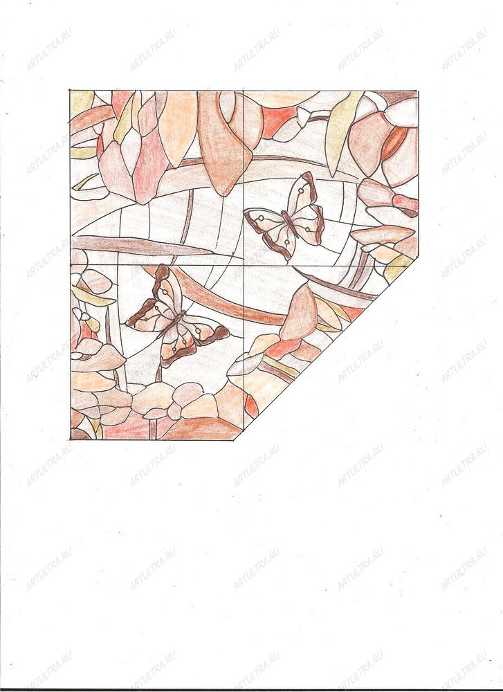 Считается, что картины, на которых есть бабочки, цветы и тому подобные изображения, действуют успокаивающе на психику человека, многие психологи даже рекомендуют вешать такие картины дома в качестве комплексного лечения депрессии. Композиция «Витражные бабочки» выполнена в приглушенных теплых оттенках, которые мягко вписываются в любой интерьер, не загромождая его, а лишь придавая ему законченности. Общий фон выполнен в нежном бирюзовом цвете, который создает иллюзию летнего неба, что также оказывает благотворное влияние на настроение и обстановку в целом.