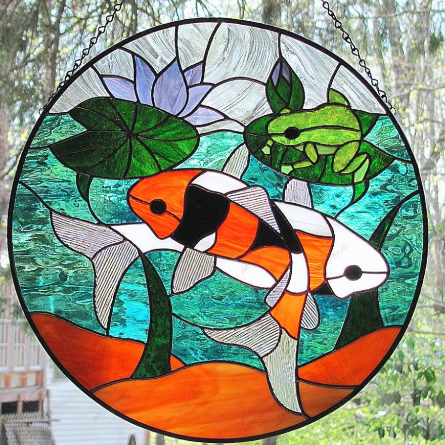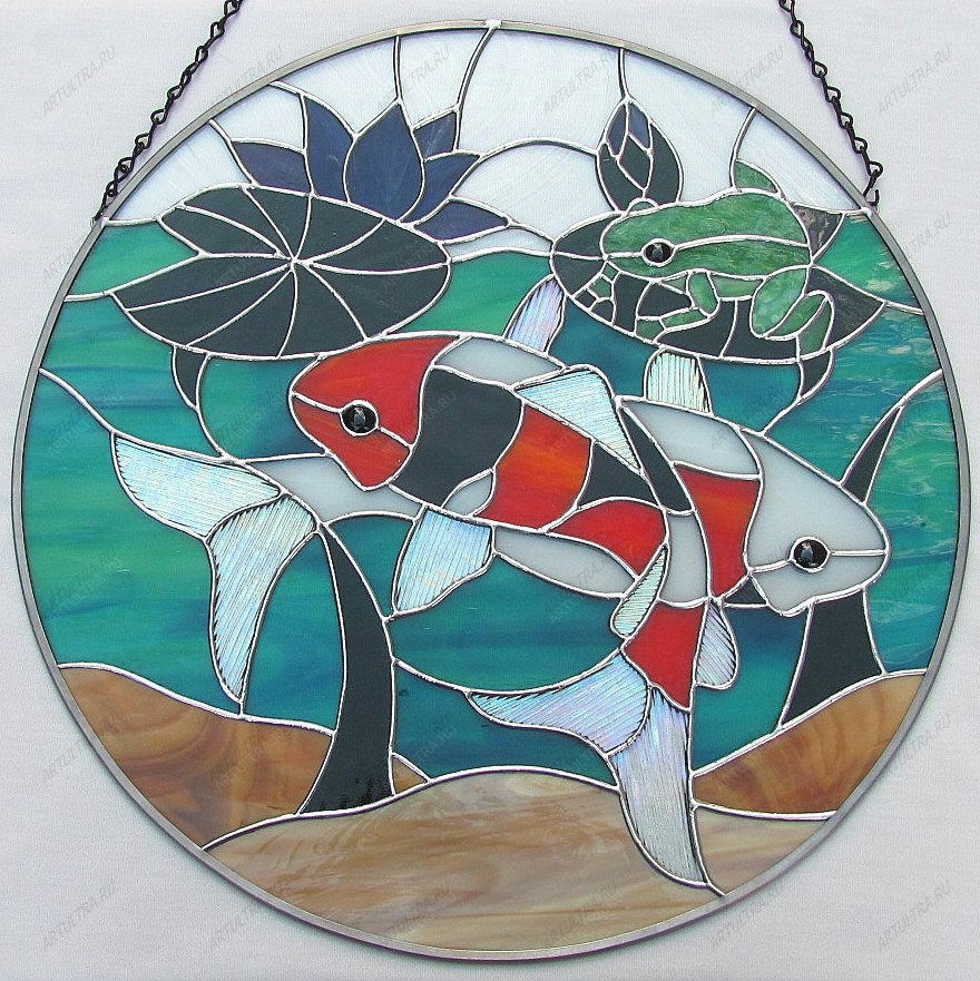 Помимо эстетических свойств, картина «Витражные рыбки» считается приносящей удачу и деньги. Адепты модного учения Фэн-шуй рекомендуют вешать изображение плывущих рыб на юго-востоке дома, именно там расположен денежный сектор. Лягушка также считается символом денег, поэтому композиция может стать мощным магнитом для привлечения богатства в ваш дом. Круглая форма придает картине особую прелесть, поэтому она удачно впишется в любой интерьер, так как сочетается буквально с любым стилем.